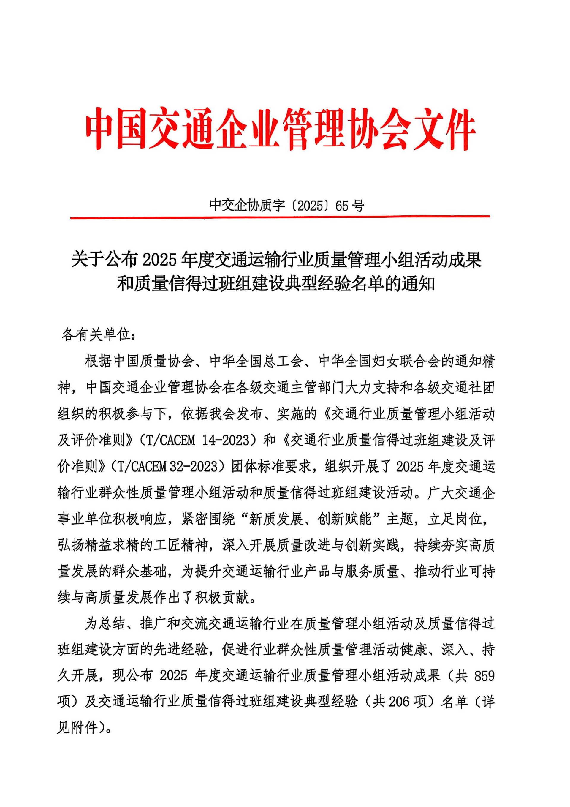 近日,中國公路建設行業(yè)協(xié)會、中國水利工程協(xié)會先后公布了第三屆全國公路建設質量管理小組活動成果評審結果和2025年度水利企業(yè)質量管理小組競賽活動結果。“···